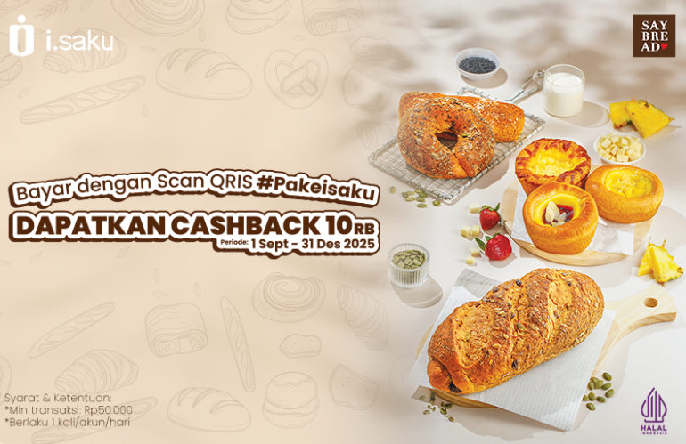 - Dapatkan cashback senilai Rp10.000 setiap pembelian all product di Toko SayBread Stand Alone minimal Rp50.000